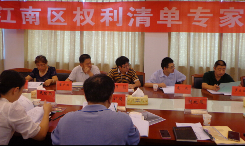 9月15日上午,江南区政府在A座13楼会议室召开权力清单专家论证会,主要对教育局等第一批七个部门拟公开的权力清单和责任清单进行研究论证,以广西大学法学院龙晟教授为代表的政府聘请的法律顾问及政府确认的部分法律顾问代表应邀参加了本次会议。会上,龙教授和专家组其他成员针对审核组与责任部门存在争议的权责事项,在实施依据、权力类型界定等方面提出了相关的法律意见和建议。