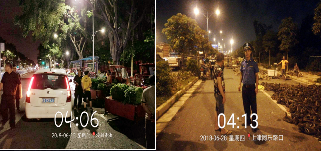 执法队巡查发现,在高棠路、五一路淡村市场附近,出现占道活禽交易及占道蔬菜摆卖的行为,占道时间从凌晨3点开始,持续到早晨的7点。为此,执法队立即行动,由特勤大队从6月20日起开展对两条道路的专项整治。