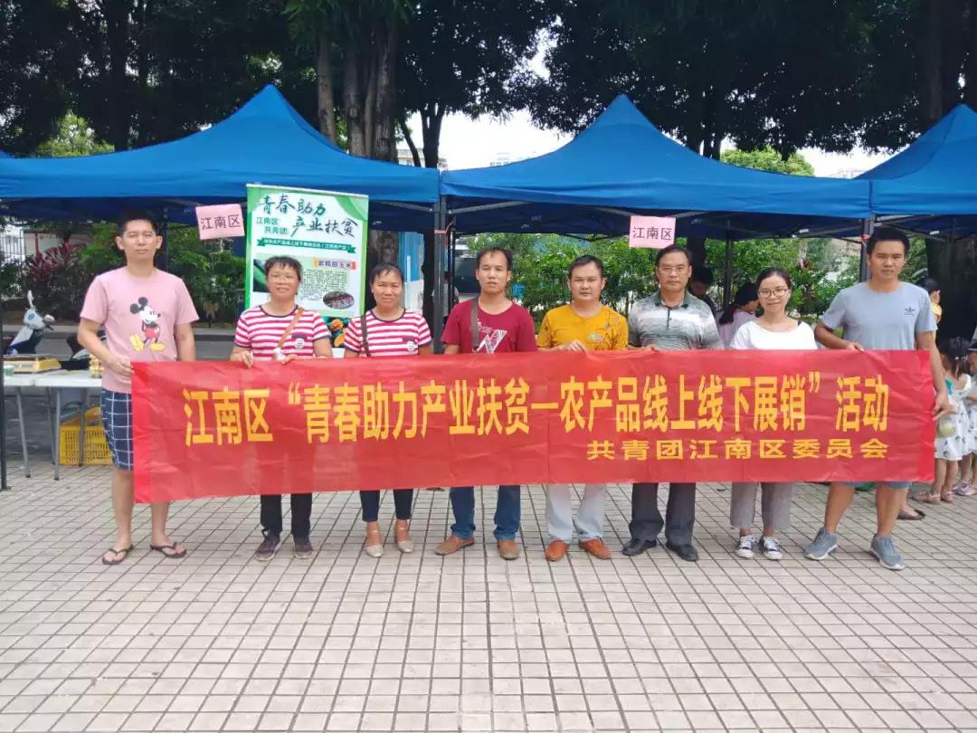 2018年7月7日,在南宁市青少年活动中心(明秀宫)举办的2018年南宁市共青团青春助力产业扶贫——贫困村特色农产品线上线下展销活动第三场(江南区、上林县专场),现场处处人头攒动、熙熙攘攘,叫卖声、询价声此起彼伏。