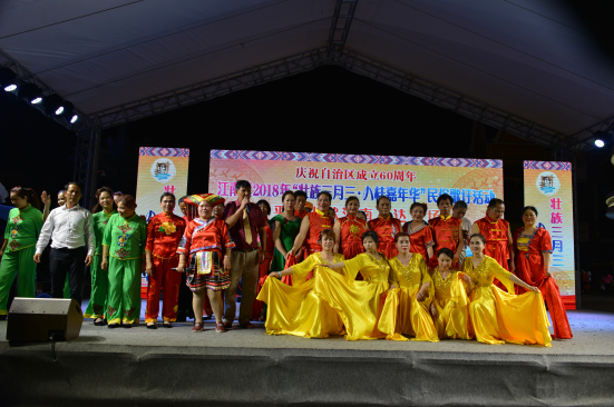 4月22日晚上,江南万达广场一片平话山歌的海洋,江南区2018年“壮族三月三·八桂嘉年华”民俗歌圩第四场在这里成功举办,近千名观众到场观看。