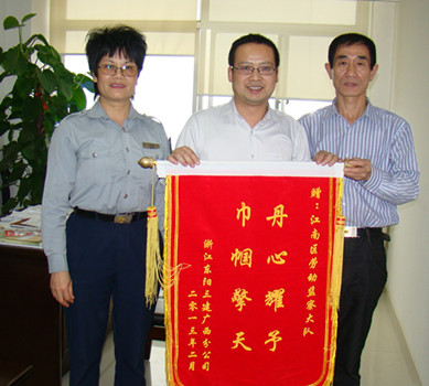 “没想到遇到了这样的农民工,更没想到劳动保障监察大队帮了我们这么大的忙,不然我们就要白白多支付数十万元了!”近日,浙江某建筑工程广西分公司的书记、工会主席付先生送来了一面写着“丹心耀予 巾帼挚天”的锦旗交到陈美杏手中,并连声感谢江南劳动保障监察大队用法律武器为企业撑腰,维护企业合法权益。
