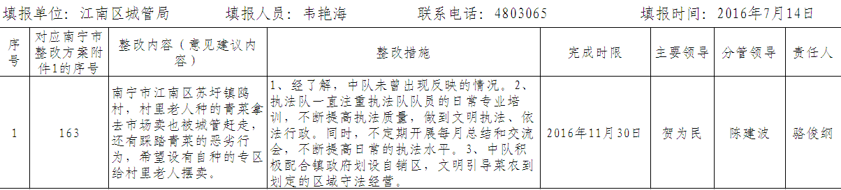 2015年度自治区绩效考评社会评价群众对江南区城管局提出的建设性意见建议整改方案