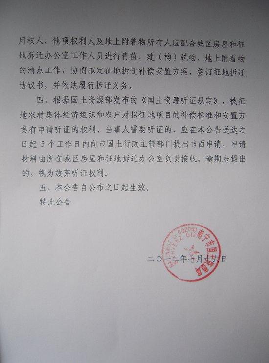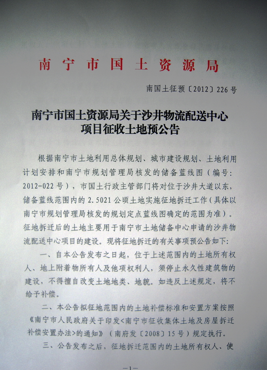 南国土征预[2012]226号 沙井物流配送中心项目征收土地预公告