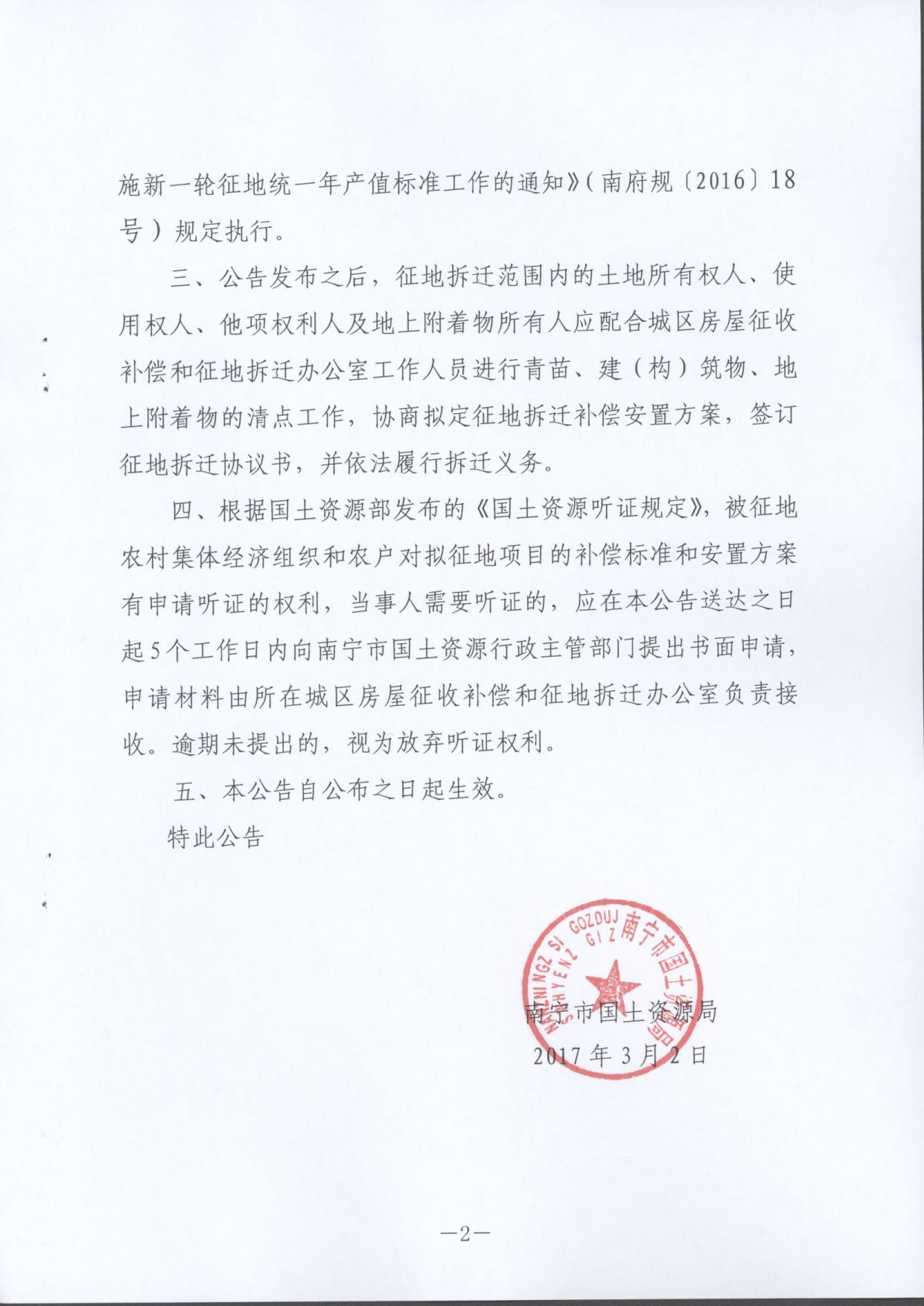 南国土征预〔2017〕19号 关于邕江综合整治和开发利用工程(南岸:老口枢纽-托洲大桥)项目征收土地预公告