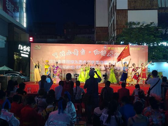 福建园街道举办了一场以“辉煌97载·颂歌献给党”为主题的“七一”文艺晚会,生动展现了共产党走过的辉煌历程。