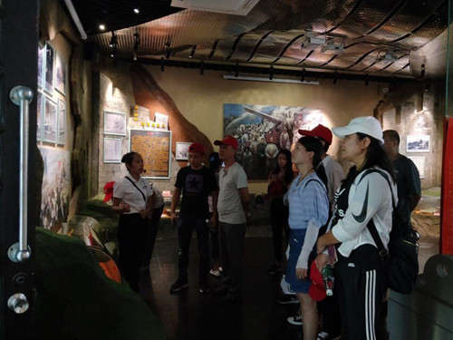 讲解员带领大家参观纪念馆
