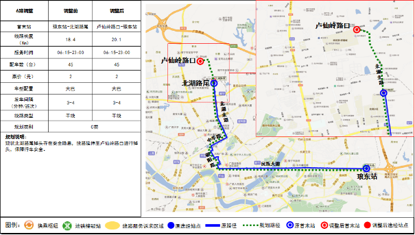 根据南宁市交通运输局《2015年度线网优化调整方案》,11月1日计划调整6路、31路等4条线路,具体优化调整方案如下: 一、6路由琅东站始发,运行至原终点站北湖路尾后延长至北湖园艺路口,新增“北湖村路口、北湖村、北湖村西、北湖安武路口、北湖安园路口、连畴村、北湖园艺路口”7对往返停靠站点。线路改道后,线长增加约2.5公里。 二、31路由大沙田始发,运行至原终点站后延长至高新东车场,新增“秀灵路北、秀灵秀厢路口、南宁市花卉公园、高新安阳路口、高新发展路口、高新东车场”7对往返停靠站点。线路改道后,线长增加约2.5公里。 三、将原71路支线变更为w8线,调整由竹溪立交始发至终点站东盟文化产业园,途径竹溪大道、青山路、青环路行驶,设“竹溪立交、市中级法院、竹溪苑、市环保局、青山英华路中、青环青山路口、交警九大队、南宁孔庙、广西民族博物馆”10对停靠站点,线路长度为9.7公里。 四、609路目前线路长达30公里,经研究决定,将线路调整为友爱北立交至博林山庄,具体走向为“秀厢大道、北湖北路、明秀路、友爱路、人民路、民主路、新民路、桃源路、双拥路、金洲路、桂春路、民族大道、青环路、凤岭南路、仙湖大道”。线路缩短为27公里。 附:线路调整改道示意图 2015年10月27日 6路调整走向示意图 31路调整走向示意图 605路调整走向示意图 71路调整走向示意图 |