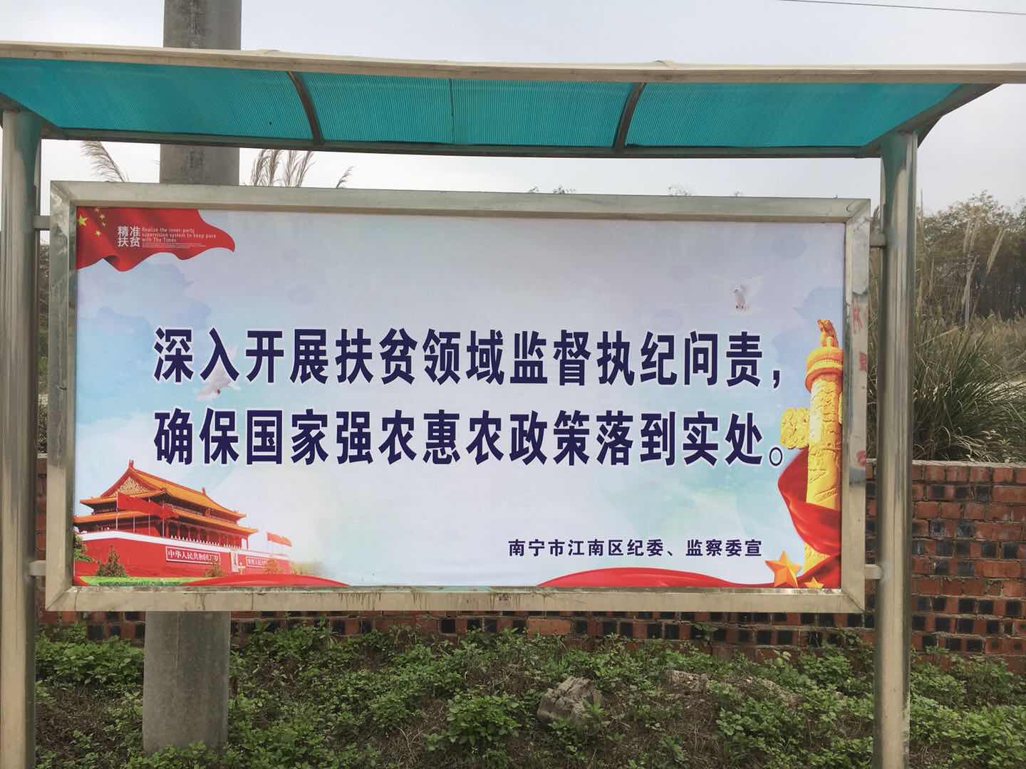 二是聚焦宣传造势,多方位宣传氛围到位。充分利用网络、微信微博、宣传栏、电子屏、单位信息平台等多种载体,开展有声势、多形式的宣传,广泛宣传自查自纠工作及其相关政策要求,做到让承担或涉及扶贫相关任务的部门和党员干部都知晓,积极营造扶贫领域腐败和作风问题专项治理自查自纠工作的浓厚氛围。截至2018年4月底,江南区制作扶贫领域腐败和作风问题专项治理活动典型案例板报36份、扶贫警示标语115条。
