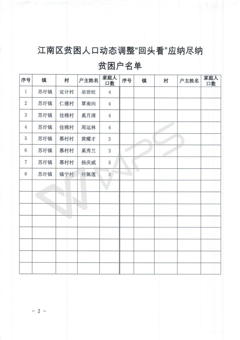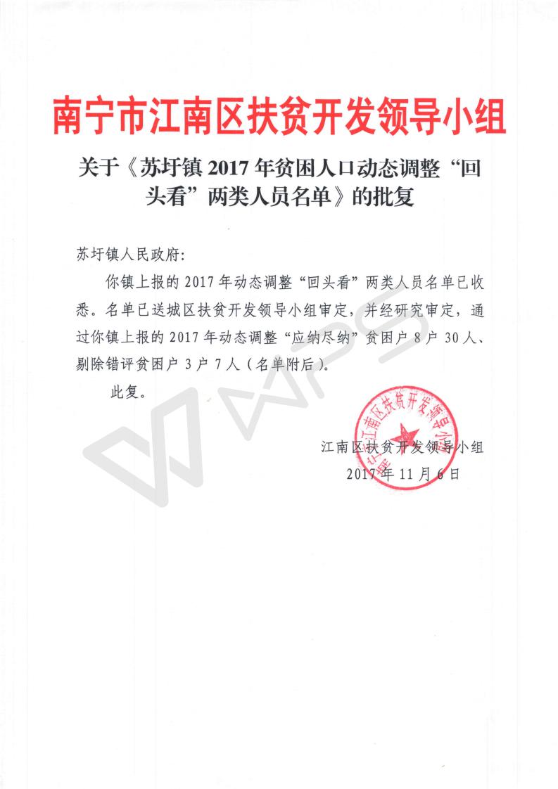 关于《苏圩镇2017年贫困人口动态调整“回头看”两类人员名单》的批复