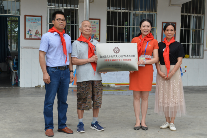 6月5日上午,在我国2018年“文化和自然遗产日”到来之际,江南区在菠萝岭小学举行《南宁元宵花灯节》传承基地授牌仪式,促进非遗项目进校园,保护和传承优秀传统文化从学生抓起。来自江南区文化新闻出版体育局、江南区文化馆、菠萝岭社区、项目代表性传承人及菠萝岭小学的全体师生,共1000多人参加了授牌仪式。 授牌仪式在菠萝岭小学早操后进行,首先由江南区文体局副局长陈忠给菠萝岭小学进行授牌,并做了热情洋益的讲话,希望菠萝岭小学全体师生能发扬勤奋好学的优良传统,保护和传承好花灯制作技艺,使南宁市元宵花灯节薪火相传,彰显菠萝岭小学“传承民族魂弘扬真善美”的办学特色。 《南宁元宵花灯节》是自治区级非物质文化遗产代表性项目,菠萝岭社区是《南宁元宵花灯节》活动开展的主要传承阵地,已连续举办28届花灯展示活动,在民间有广泛的群众基础和深厚的底蕴。菠萝岭小学处于《南宁元宵花灯节》展示活动的校心区,有良好的传承环境和条件,江南区文化主管部门根据这些有利条件,确定在菠萝岭小学建设《南宁元宵花灯节》传承基地,切实加强优秀传统文化的保护和传承。 仪式结束后大家参观了菠萝岭小学的“传统花灯制作”展示室。《南宁元宵花灯节》代表性传承人老艺人黎炳生和学校的老师正在展示室认真的指导学生制作花灯,学生们对传统花灯制作的展现了浓厚的兴趣,各个争先恐后地向老师请教并认真操作。学生们纷纷表示:通过开展“传统花灯制作”教学,增强了他们对“元宵花灯节”的认识和了解,提高了他们对当地传统文化的兴趣。老师们表示:通过开展“传统花灯制作”教育,增强了学业生对当地传统文化的自豪感、荣誉感,能更好的传承、弘扬地方非物质文化遗产,深化了学生爱祖国、爱家乡的教育。 菠萝岭元宵花灯会是正月十五南宁元宵期间举行的一项民间闹花灯习俗活动,广泛流行于南宁市城区及周边地区,以江南区菠萝岭、石柱岭一带最为盛行。 南宁元宵花灯节起源于何时,民间有多种说法,其传说也有多个版本,从尚健在的老艺人的口述中,可以推测南宁元宵闹花灯的习俗在清朝时已十分盛行,且彩灯多,造型好,曾闻名一时。现在菠萝岭元宵花灯节已成功举办了28届。2014年,《南宁元宵花灯节》列入自治区级非物质文化遗产项目名录。 菠萝岭元宵花灯会内容十分丰富,包括制花灯、展花灯、猜灯迹,吃汤圆及舞龙舞狮、歌舞表演等。其中的花灯展是最吸引人的,家家户户都手工制作花灯。花灯种类繁多,一般有传统宫灯、莲花灯、石榴灯、串联灯、十二生肖、飞禽走兽等,各种造型形神具备,炫丽夺目,流光溢彩。 菠萝岭元宵花灯会是南宁市元宵节规模最大的民间习俗活动,每年都吸引众多市民前来观看,观灯者充街塞巷,整个灯会被围得水泄不通,一盏盏的花灯寄托了人们对未来生活的美好愿望。