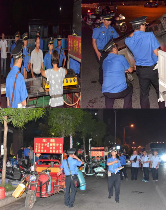 从当晚10点30分开始,由江南区“大行动”办牵头,组织由城管、公安、交警、宣传、环保、工商质监、食药监等部门以及福建园街道办和江南街道办组成的联合执法队伍,对辖区凤江路周边开展夜市专项整治活动。